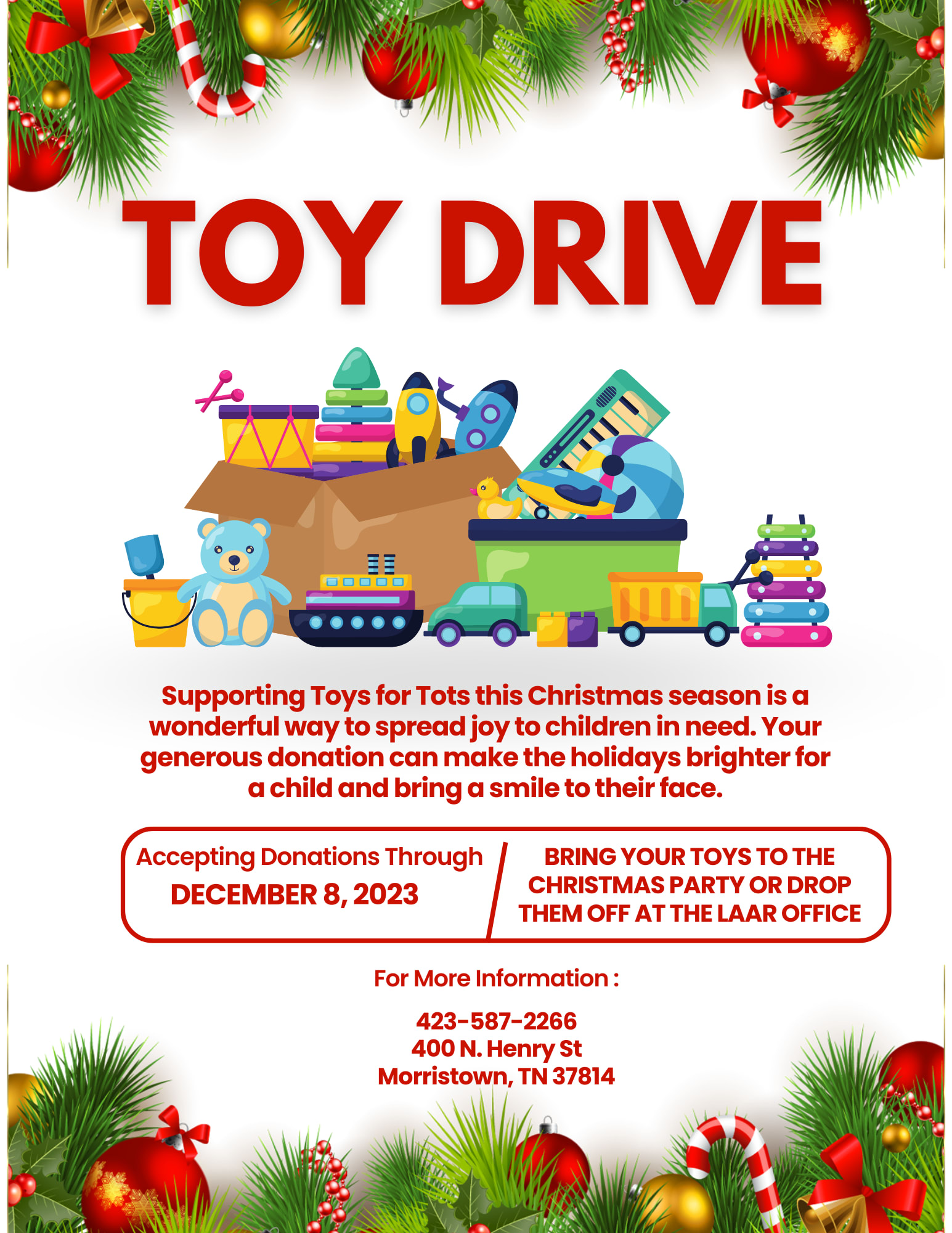 Please bring a new toy with you because we are collecting for the Toy Drive.